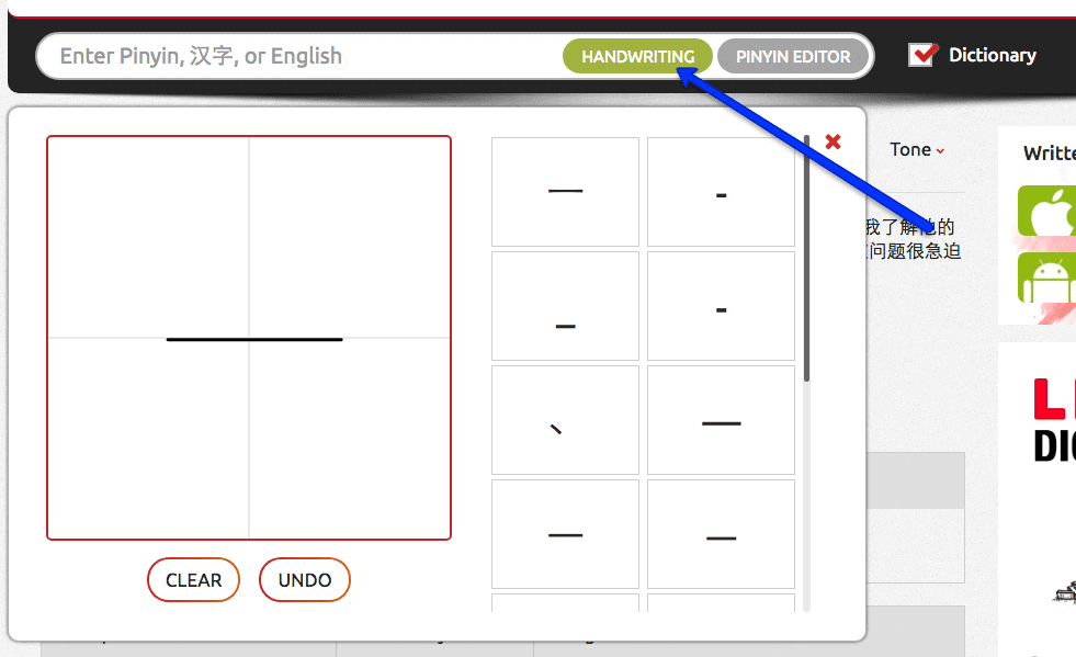We’ve just updated the handwriting function on the online dictionary, to ensure that it can be used on all web browsers.